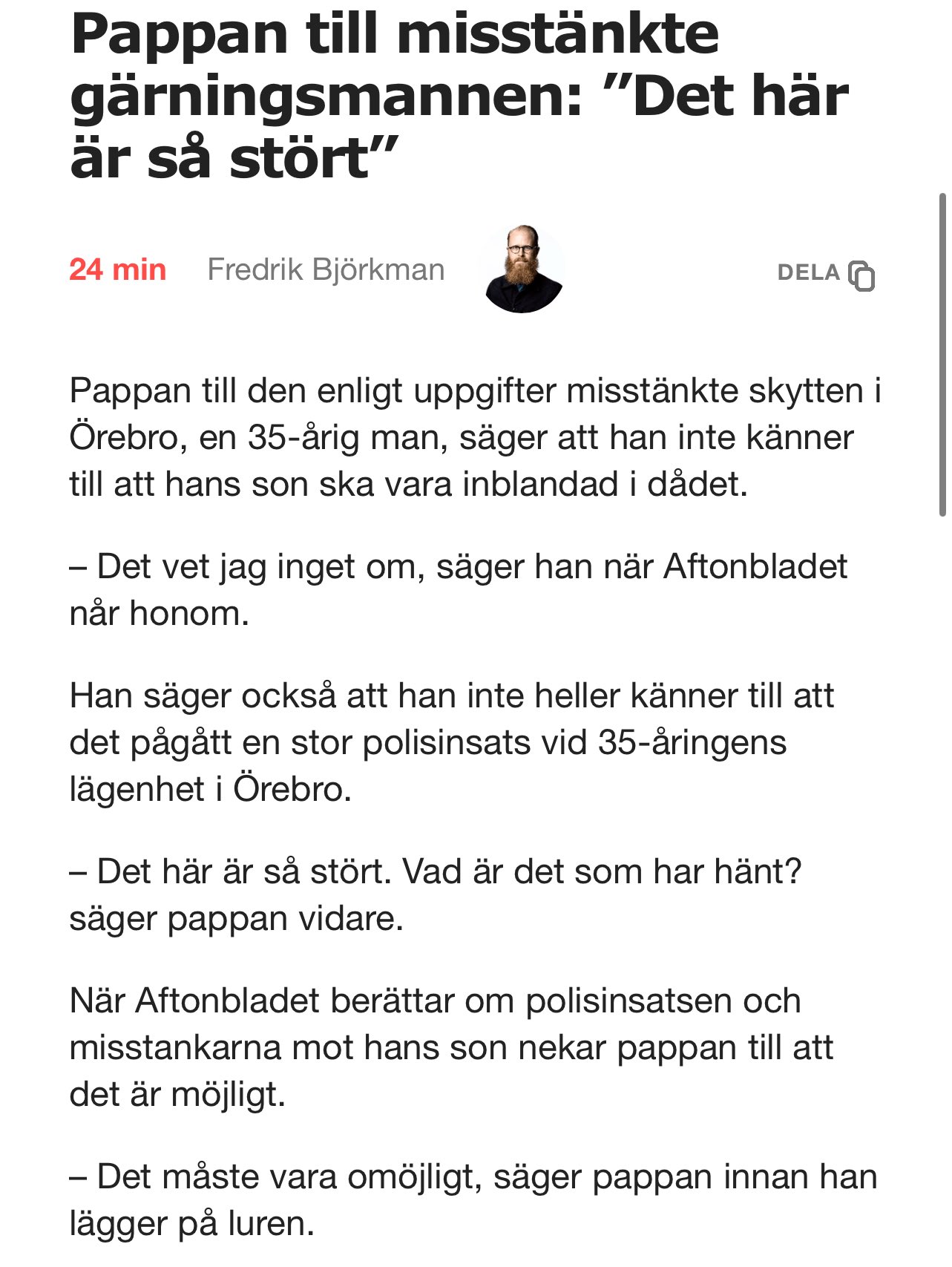 LÄS ÄVEN: Aftonbladets fadäs – ringde misstänkta skyttens chockade far