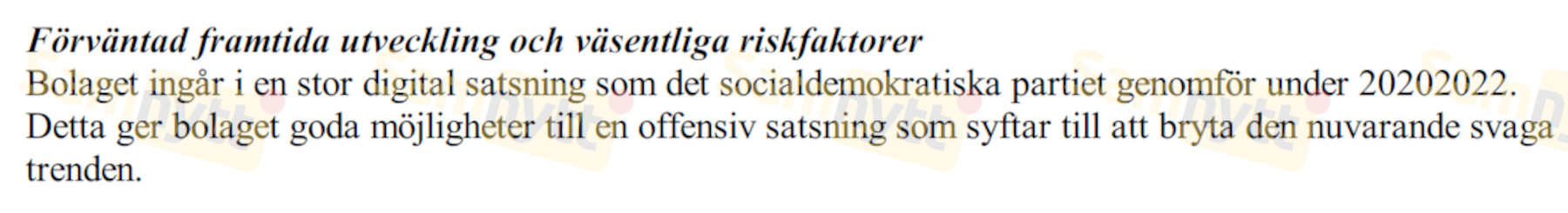 ”Detta ger bolaget goda möjligheter till en offensiv satsning som syftar till att bryta den nuvarande svaga trenden”, står att läsa i årsrapporten från det året, där det svart på vitt poängteras att det är Socialdemokraterna som står bakom den.