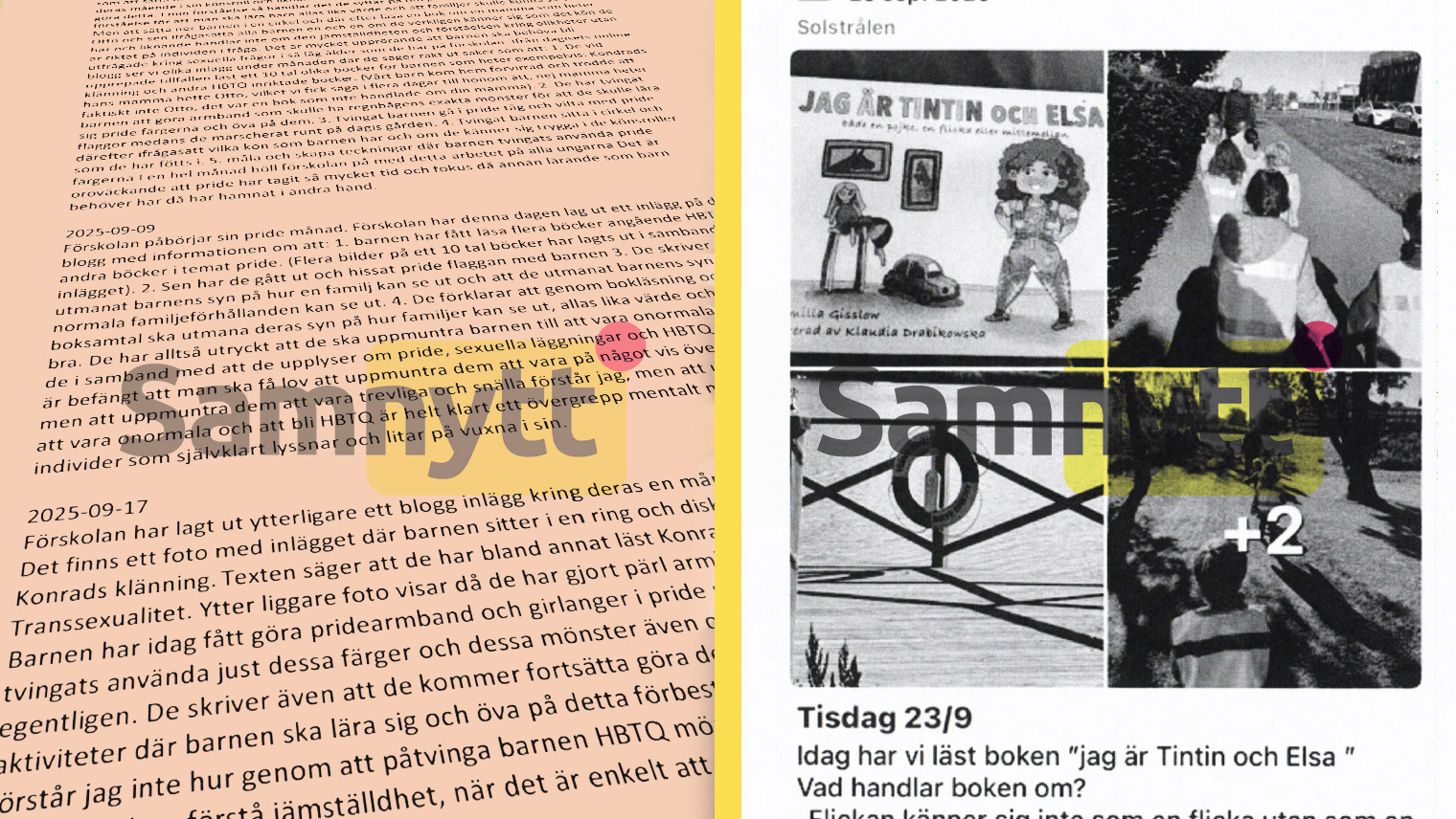 Samnytt har tagit del av två anmälningar till Justitieombudsmannen (JO) som rör en kommunal och en privat förskola i Kalmar. Av underlaget framgår att Pride-temat pågick under flera veckor. I Unikum – plattformen där förskolan kommunicerar med vårdnadshavare – publicerade personalen bilder, texter och dokumentation av aktiviteterna.