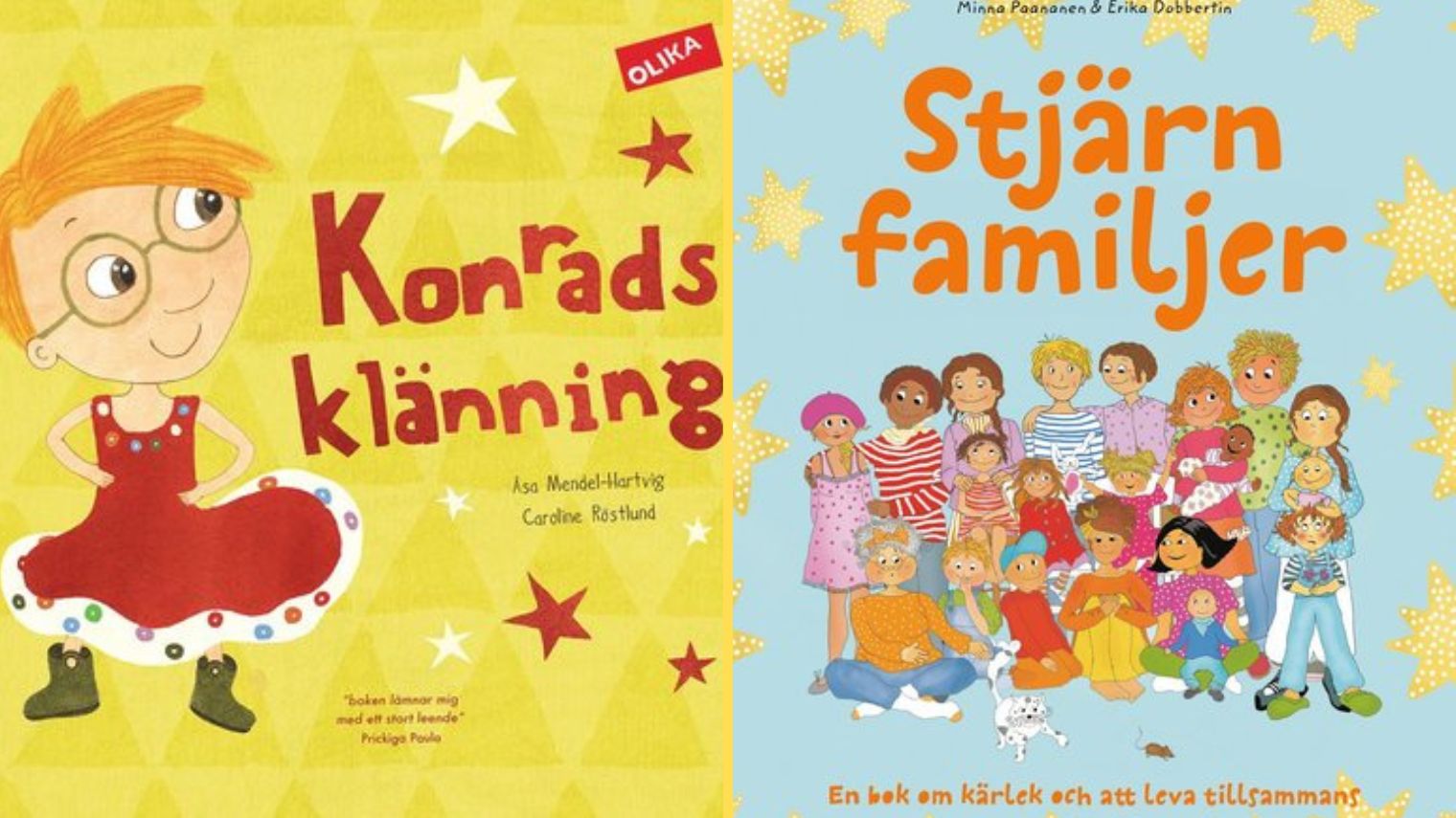 Böcker som Konrads klänning, Jag är Tintin och Elsa, Stjärnfamiljer och Allt om familjer förekommer i beskrivningarna. Dessa handlar om könsidentitet, normbrytande uttryck och alternativa familjekonstellationer. Pedagogerna återger där även dialoger med barnen, där frågor som ”kan alla ha klänning?” och ”är man pojke eller flicka?” diskuteras.