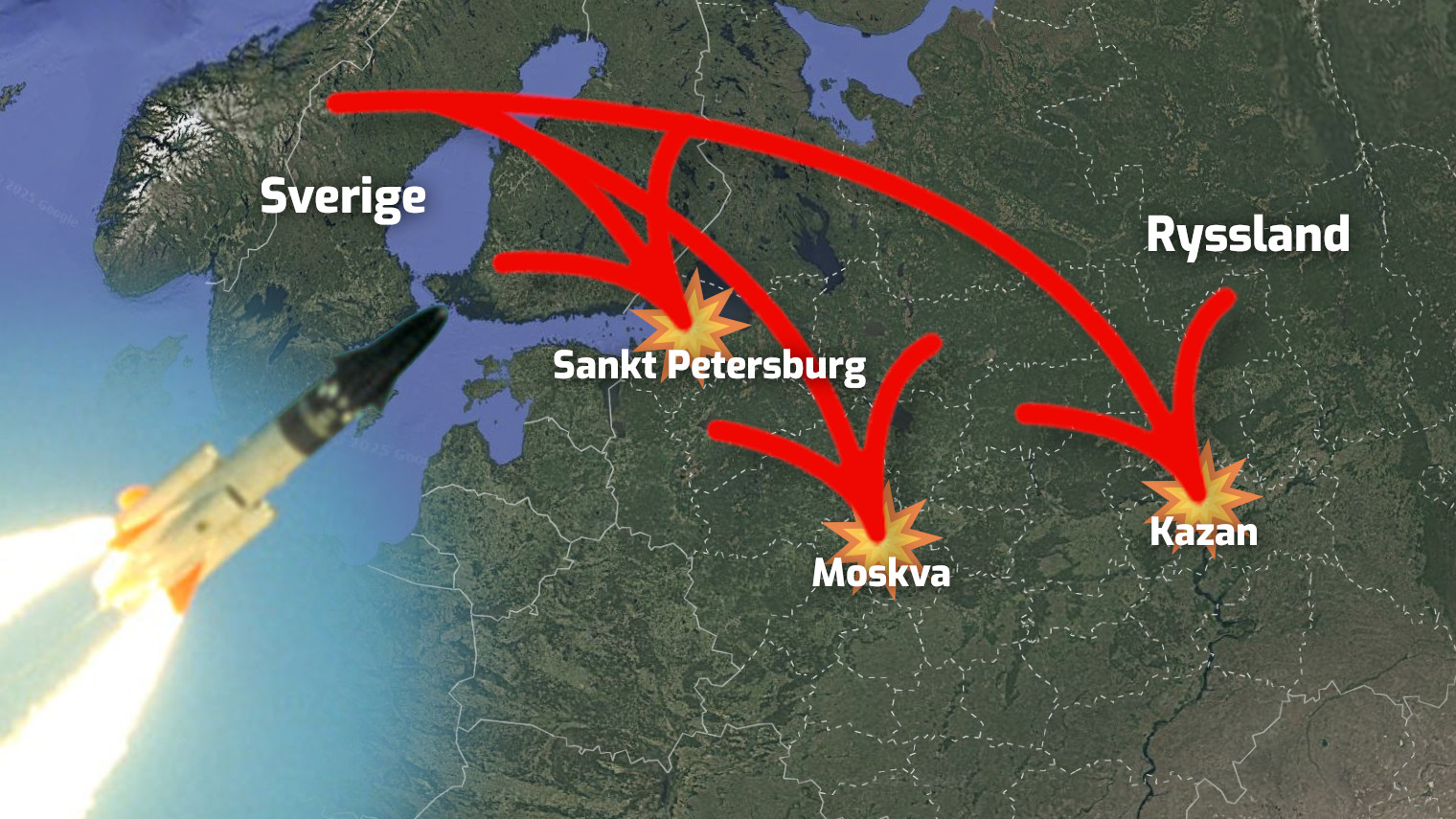 Missiler med en räckvidd på 2000 kilometer, eller 200 mil, skulle innebära att ryska städer som Moskva, Sankt Petersburg och Kazan skulle kunna nås av missiler som avfyras från Sverige.