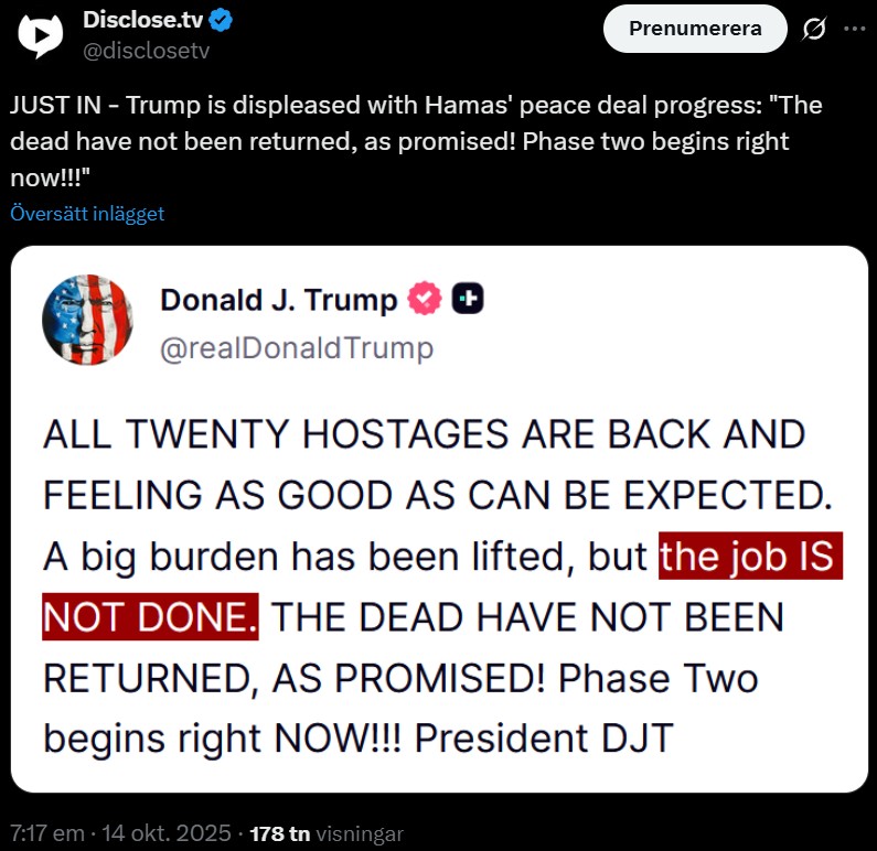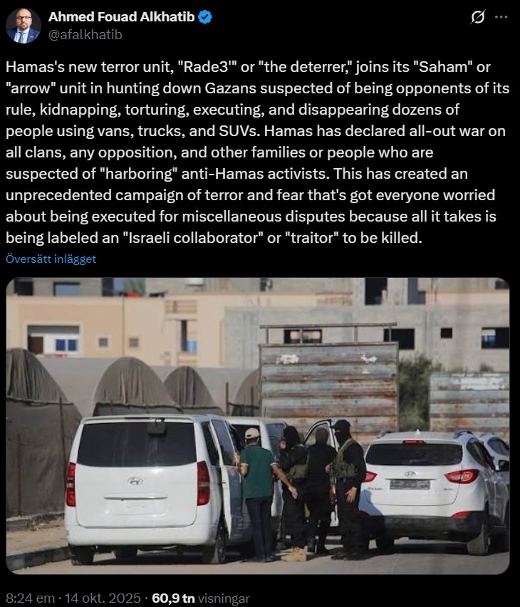 Bara timmar efter att fredsavtalet med Israel undertecknats genomförde Hamas massavrättningar i Gaza. Samtidigt gör den amerikanske presidenten Donald Trump klart att ifall terrorgruppen inte lägger ned vapnen, i enlighet med avtalet, kommer man se till att de avväpnas med våld.