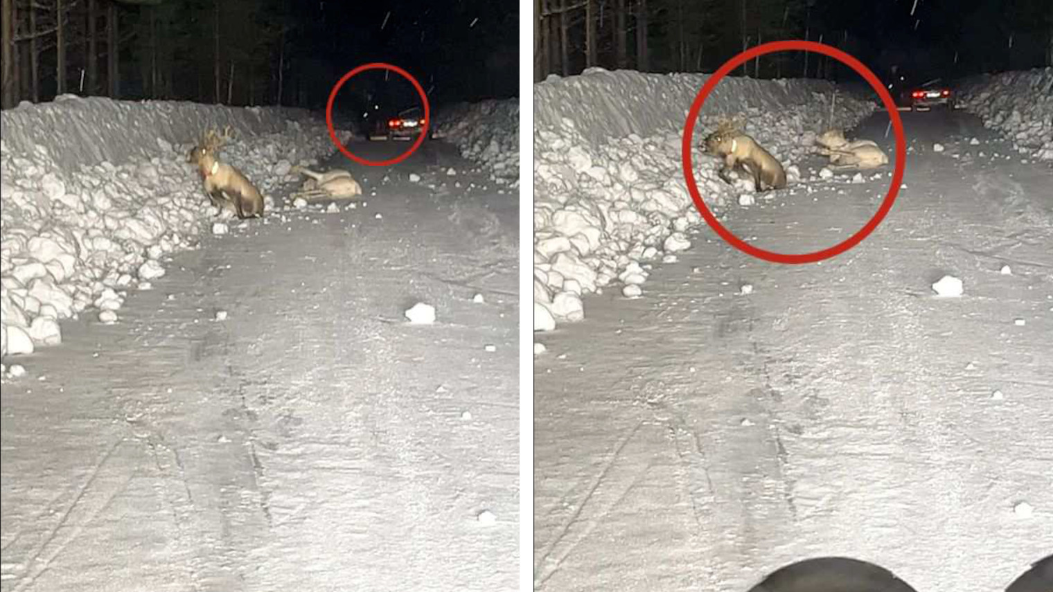 I skogarna runt vägen finns det renar. Och några av dem har tagit sig ut på vägen. Männen bestämmer sig för att jaga efter renarna med sina bilar; allt medan de skrattar och filmar det de gör.