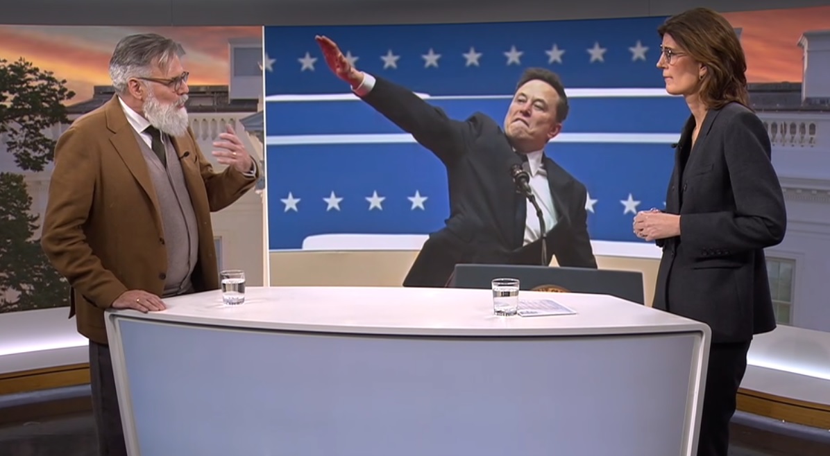 Efter att Elon Musk tackade publiken vid Donald Trumps segerfest med en gest som vissa tolkat som en Hitlerhälsning tog statstelevisionen in en påstådd expert som förklarade att detta var en ”välkänd högerextrem taktik”.